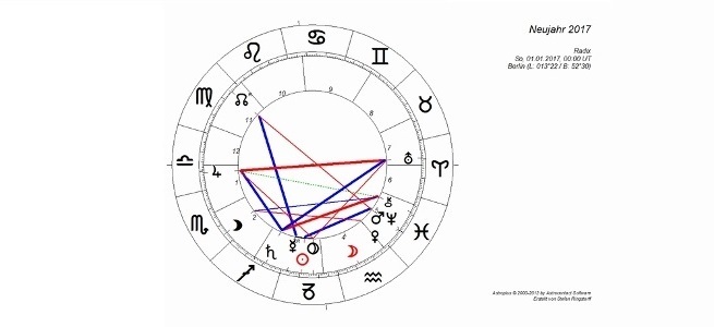 Das beteiligte Saturn/Uranus-Trigon sorgt für eine tragfähige Mischung aus Altem und Neuem. Im Zusammenspiel mit Jupiter in der Waage kann 2017 viel erreicht werden. Es geht mehr denn je um Einigkeit und Kompromiss. Es ist eine gute Zeit, um mit neuen Ideen und Ansätzen voranzukommen, ohne Traditionen zu vergessen und Elemente des Status quo zu bewahren.